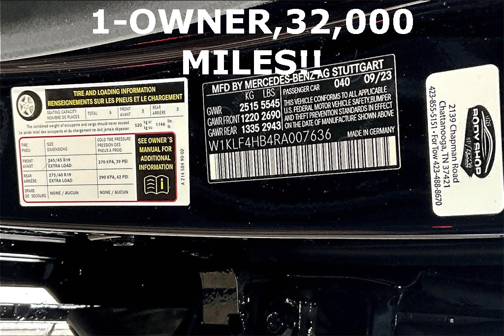 - Condition: Pre-Owned Mileage: 32,614 Stock #: 007636A VIN: W1KLF4HB4RA007636 Dealer Lot: Mercedes-Benz at Long of Chattanooga