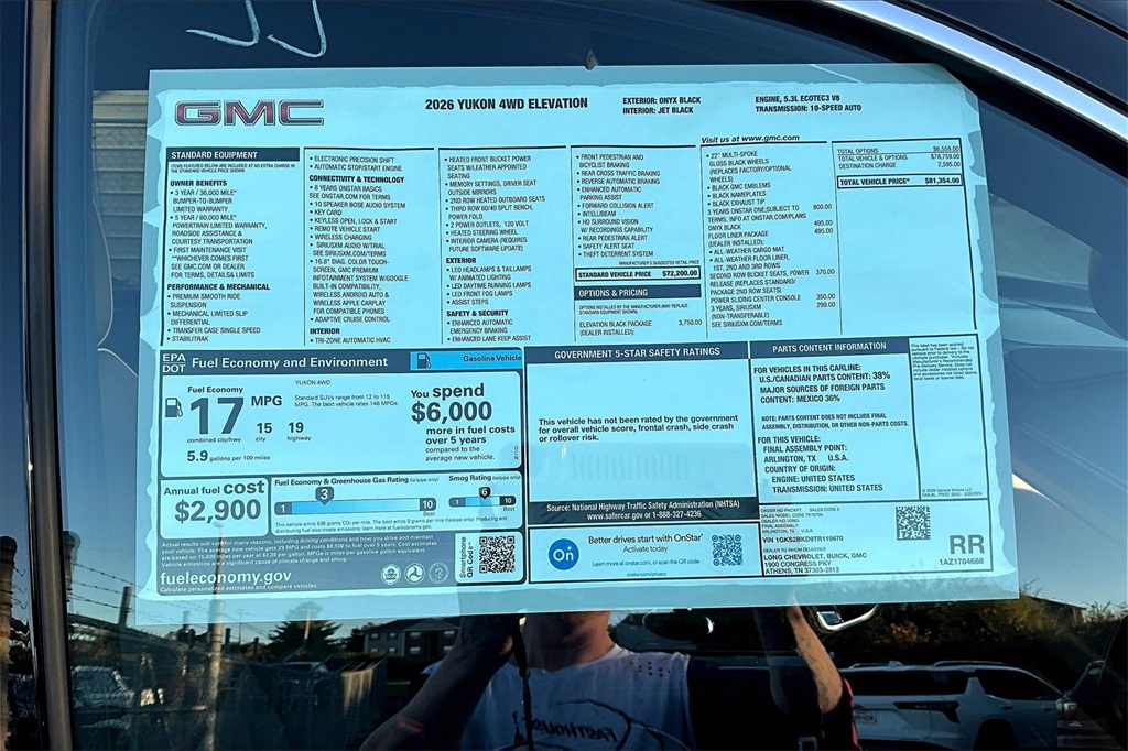 Onyx Black 2026 GMC Yukon Elevation 4WD 10-Speed Automatic with Overdrive EcoTec3 5.3L V8 4WD.