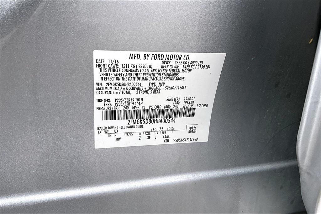 VIN: 2FMGK5D80HBA00544 | Stock #: A00544P | Mileage: 56,799