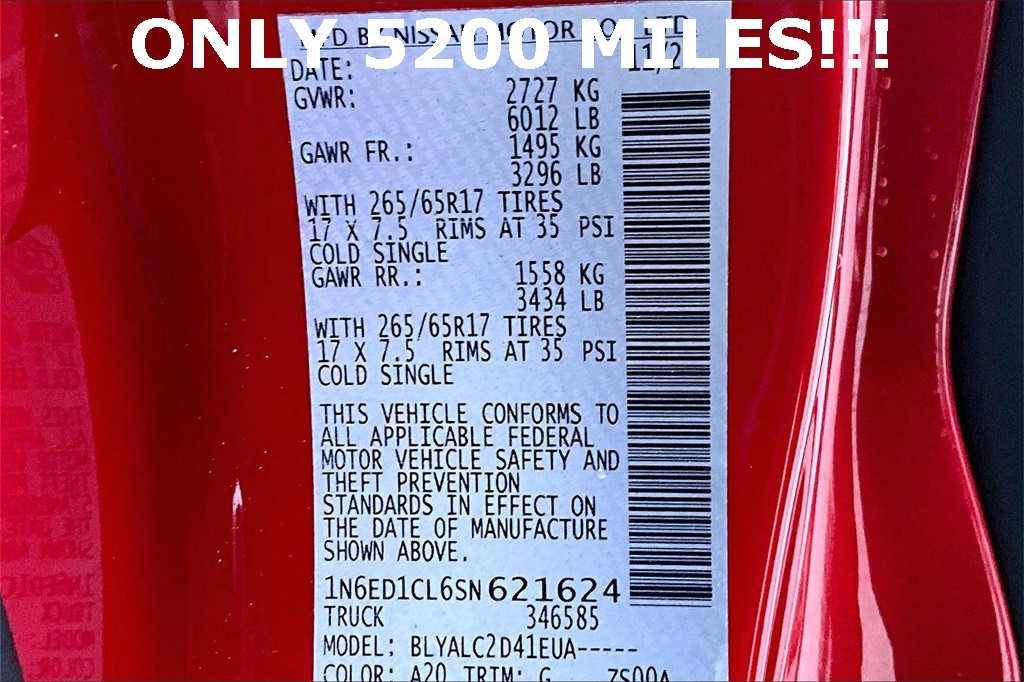 VIN: 1N6ED1CL6SN621624 | Stock #: 621624A | Mileage: 5,209