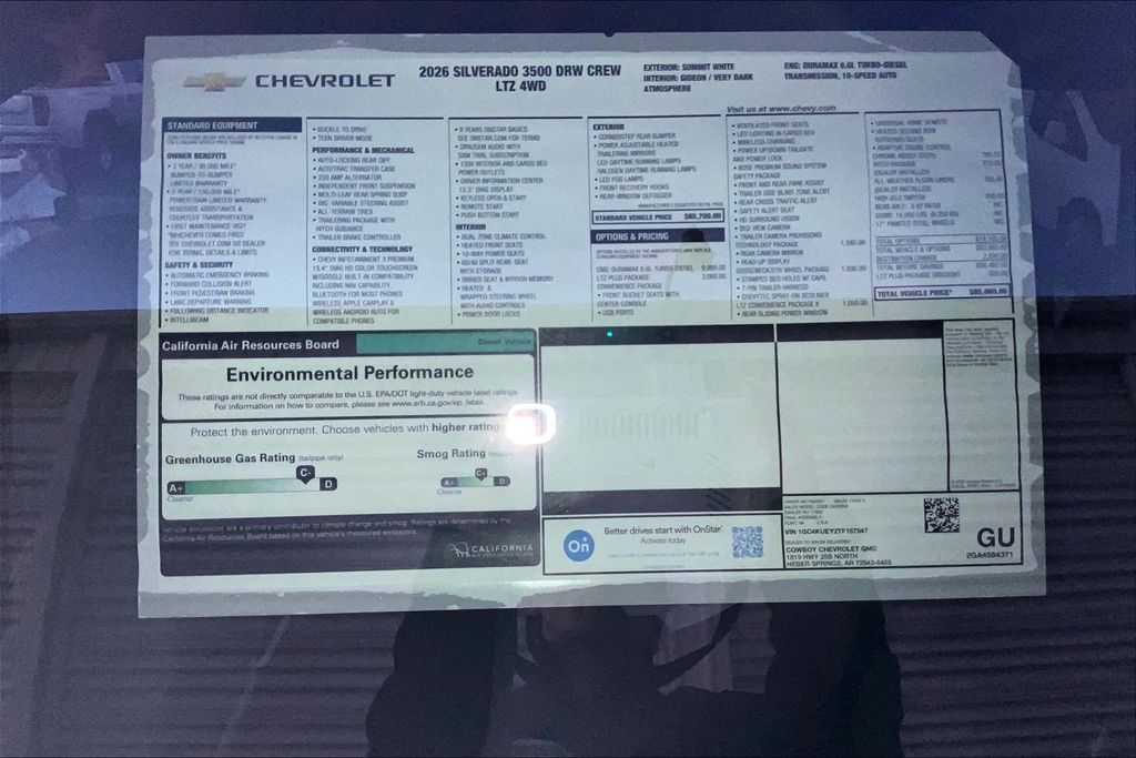 Summit White 2026 Chevrolet Silverado 3500HD LTZ 4WD 10-Speed Automatic Duramax 6.6L V8 Turbodiesel 10-Speed Automatic 4WD Gideon/Very Dark Atmosphere Leather. Price includes: $1000 - Chevrolet Consumer Cash Program. Exp. 04/30/2026