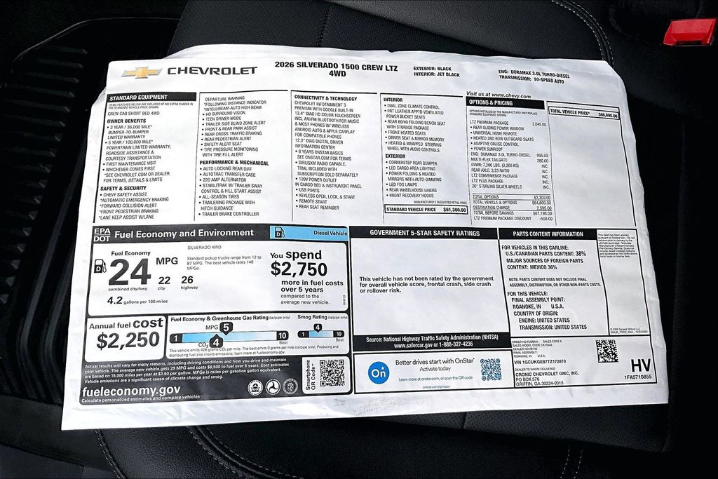 Black 2026 Chevrolet Silverado 1500 LTZ 4WD 10-Speed Automatic 3.0L I6 10-Speed Automatic 4WD Black Leather.