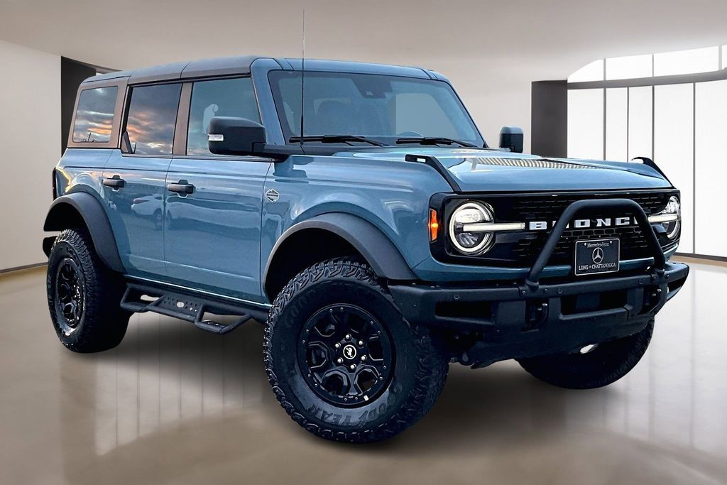 Mercedes-Benz at Long of Chattanooga is proud to present you with another True Market Priced Pre-Owned Vehicle. This 2023 Ford Bronco Wildtrak is loaded with the following Factory Options:ABS brakes Compass Electronic Stability Control Heated door mirrors Illuminated entry Low tire pressure warning Remote keyless entry Traction control 4-Wheel Disc Brakes 7 Speakers Air Conditioning AM/FM radio: SiriusXM with 360L AM/FM Stereo Auto High-beam Headlights Brake assist Delay-off headlights Driver door bin Driver vanity mirror Dual front impact airbags Dual front side impact airbags Emergency communication system: 911 Assist Exterior Parking Camera Rear Front anti-roll bar Front Bucket Seats Front Center Armrest Front reading lights Front wheel independent suspension Fully automatic headlights Integrated roll-over protection Occupant sensing airbag Outside temperature display Overhead airbag Overhead console Panic alarm Passenger door bin Passenger vanity mirror Power door mirrors Power steering Power windows Radio data system Security system SiriusXM Radio w/360L Speed control Split folding rear seat Steering wheel mounted audio controls SYNC 4 Tachometer Telescoping steering wheel Tilt steering wheel Trip computer and Variably intermittent wipers.