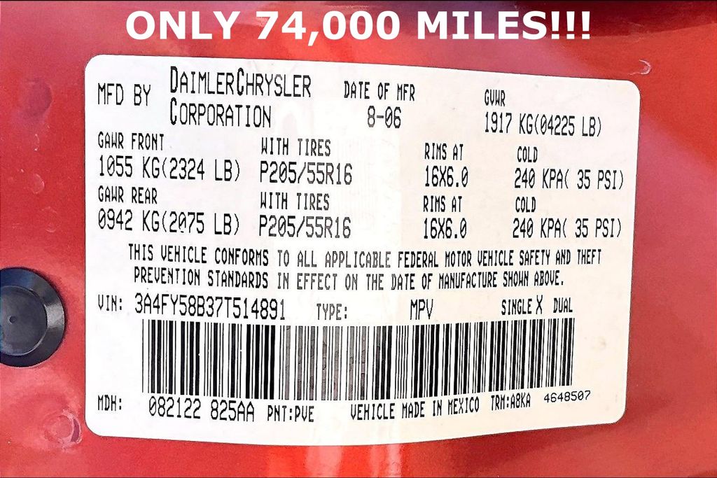 VIN: 3A4FY58B37T514891 | Stock #: 514891P | Mileage: 74,390
