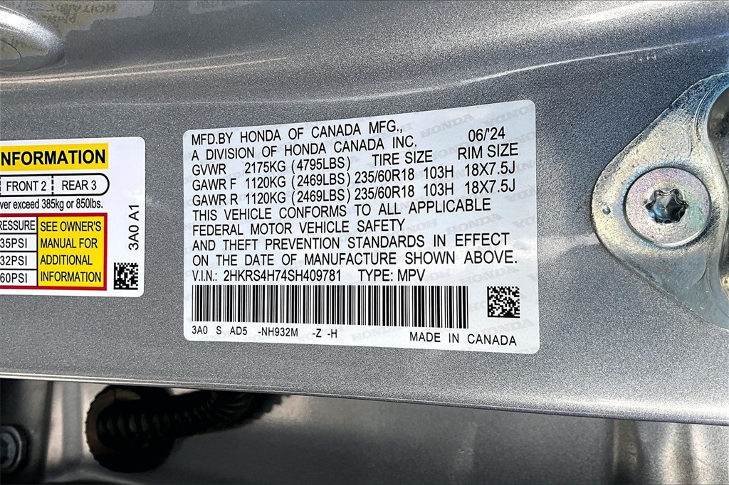 VIN: 2HKRS4H74SH409781 | Stock #: 409781A | Mileage: 2,501